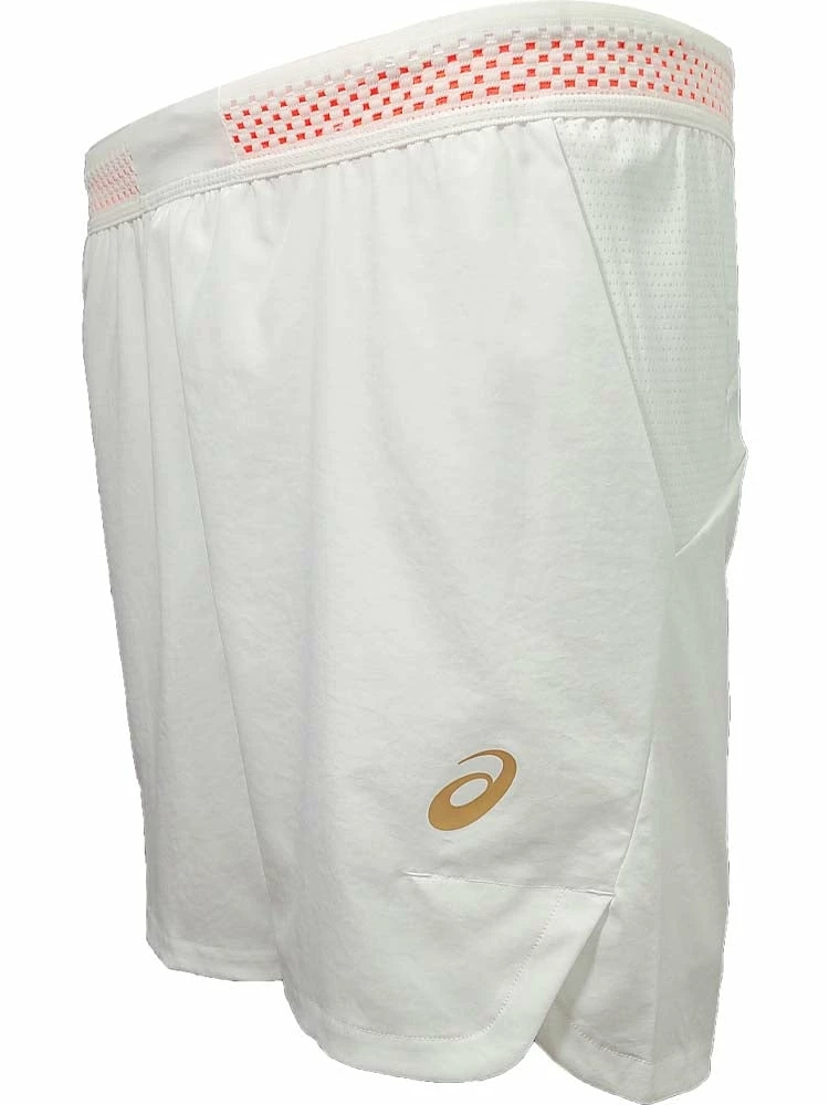 The ASICS short features mesh panels along the waistband, inseams and back to help ensure breathability, while the pockets allow enough storage for two tennis balls. Complete with a drawcord waistband for an adjustable fit, these shorts also incorporate slits at the sides for improved flexibility. Fabric: 100% Polyester. Colour Shown: Brilliant White / Sunrise Red.
