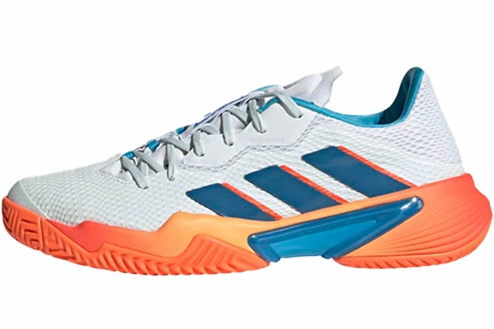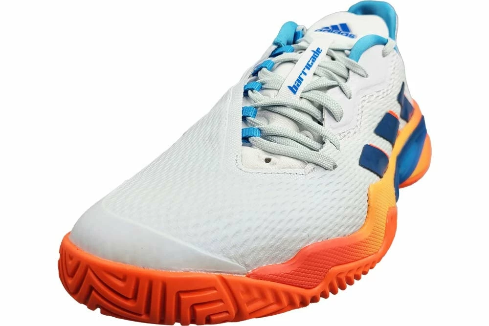Without control, there are no guarantees on court. So Barricade is back to help you dominate. The intuitive lacing system on these adidas tennis shoes locks you in by pulling down the neoprene tongue to match your foot shape. A Geofit system in the heel fills the remaining gaps to complete the connection. Underneath, a cushioned Bounce midsole and TPU midfoot shank keep every step comfortable and stable. That bold adidas wordmark on the medial side is made from tough RPU to combat wear from foot drag. Colour Shown: Blue Tint / Blue Rush / Cloud White.