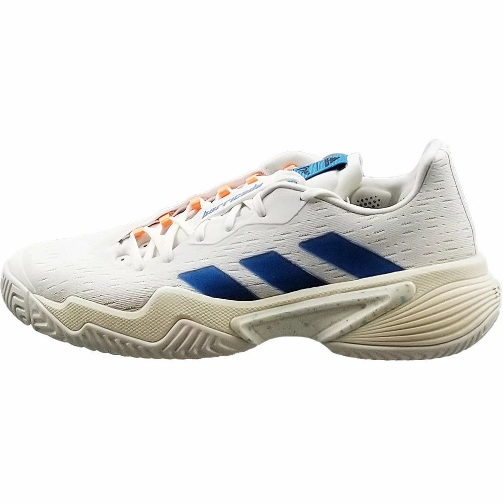 Without control, there are no guarantees on court. So Barricade is back to help you dominate. The intuitive lacing system on these adidas tennis shoes locks you in by pulling down the neoprene tongue to match your foot shape. A Geofit system in the heel fills the remaining gaps to complete the connection. Underneath, a cushioned Bounce midsole and TPU midfoot shank keep every step comfortable and stable. That bold adidas wordmark on the medial side is made from tough RPU to combat wear from foot drag. Colour Shown: Cloud White / Pulse Blue / Mint Ton.