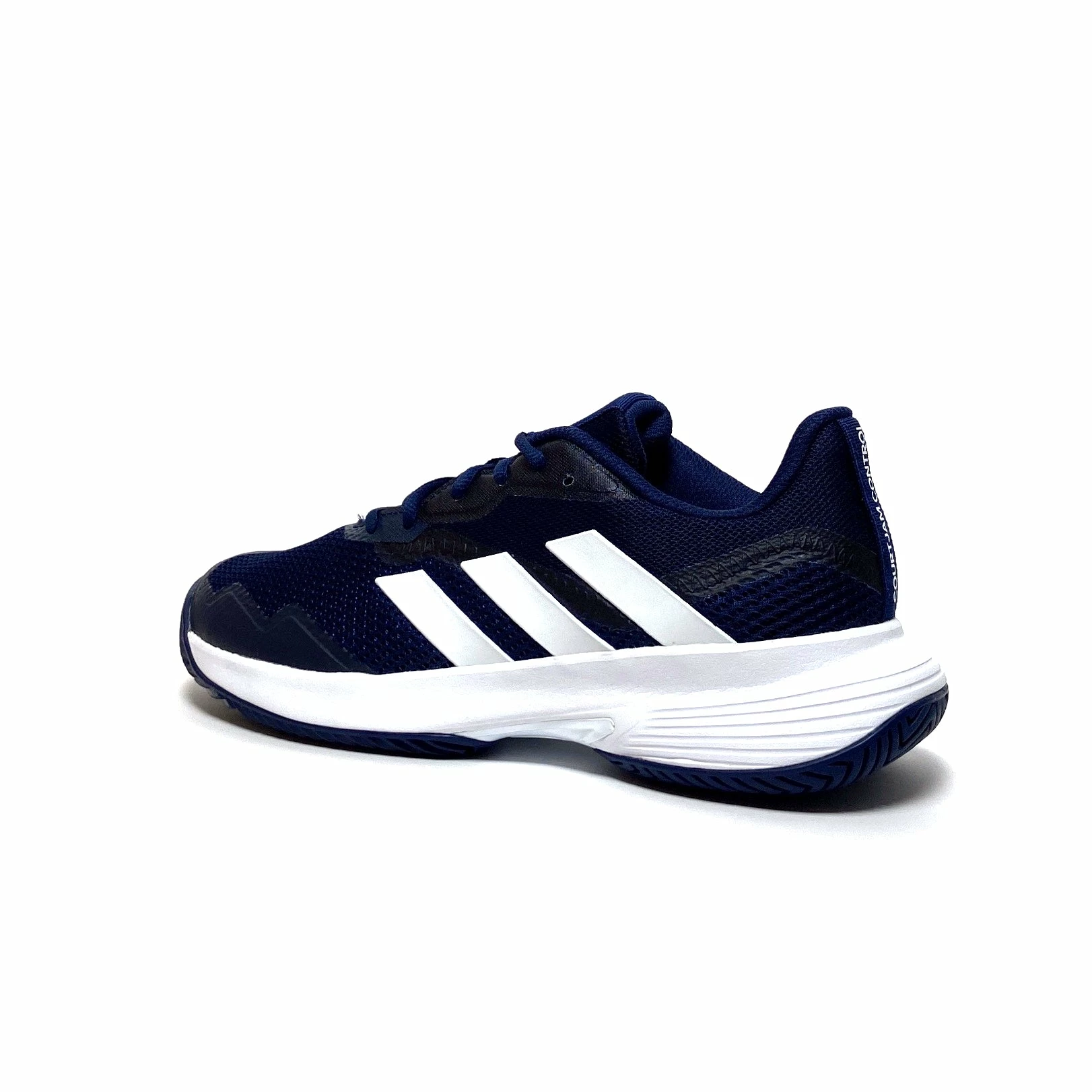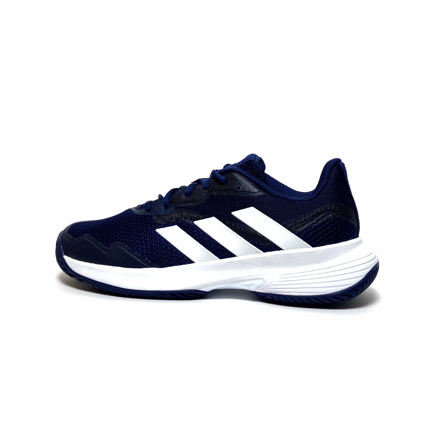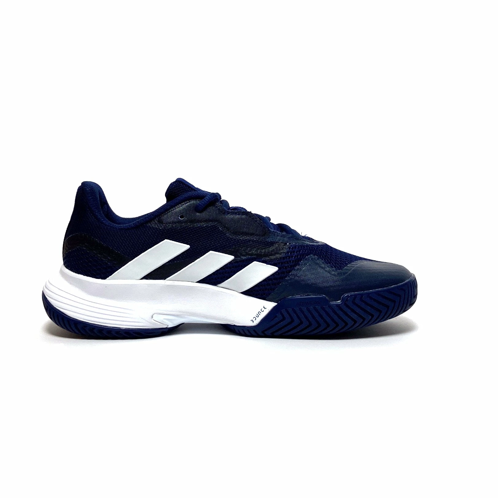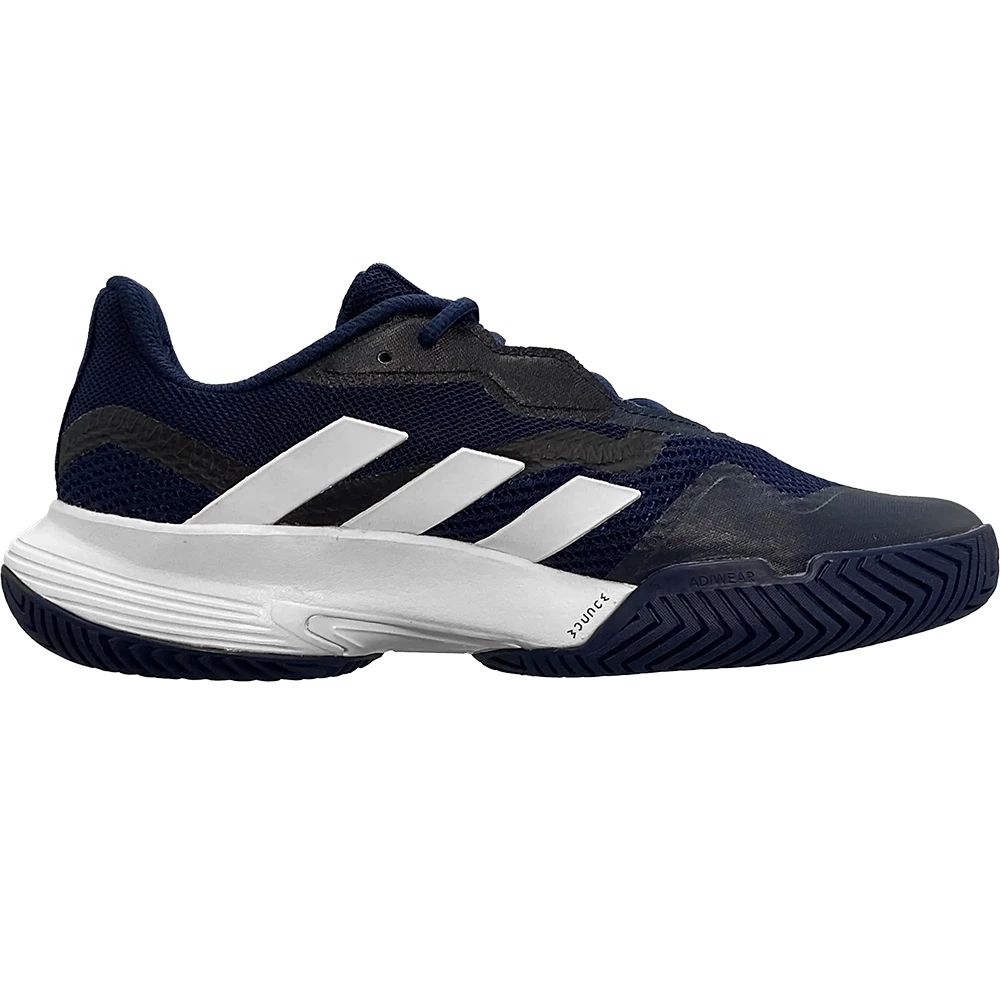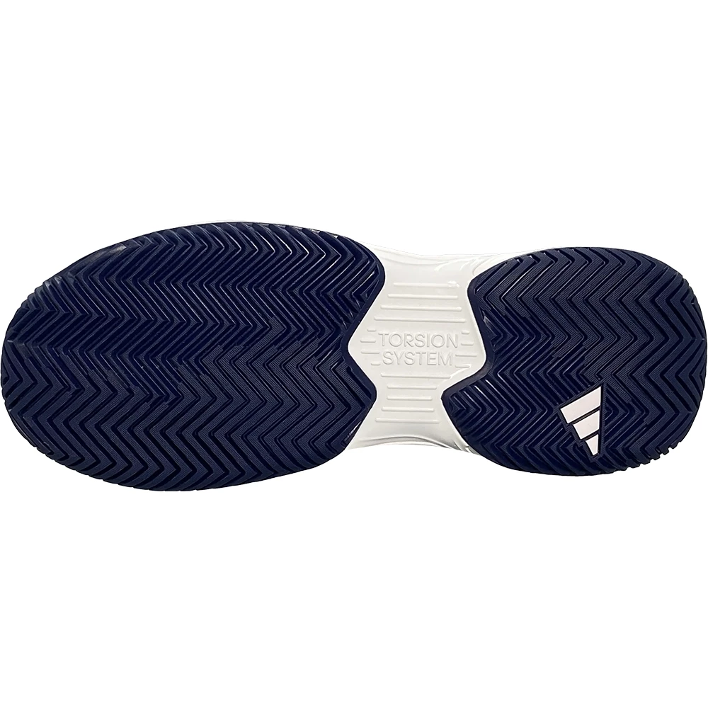 Master the courts in these men’s adidas tennis shoes. Sitting on a flexible Bounce midsole, their breathable mesh upper keeps you comfortable while you take charge of every game. Underneath, a non-marking hard court outsole and stabilising Torsion System work together so you stay in control of every sidestep and slide. This shoe is made with high-performance recycled materials and features an upper made with 50% recycled content. Colour Shown: Team Navy Blue 2 / Cloud White / Cloud White.