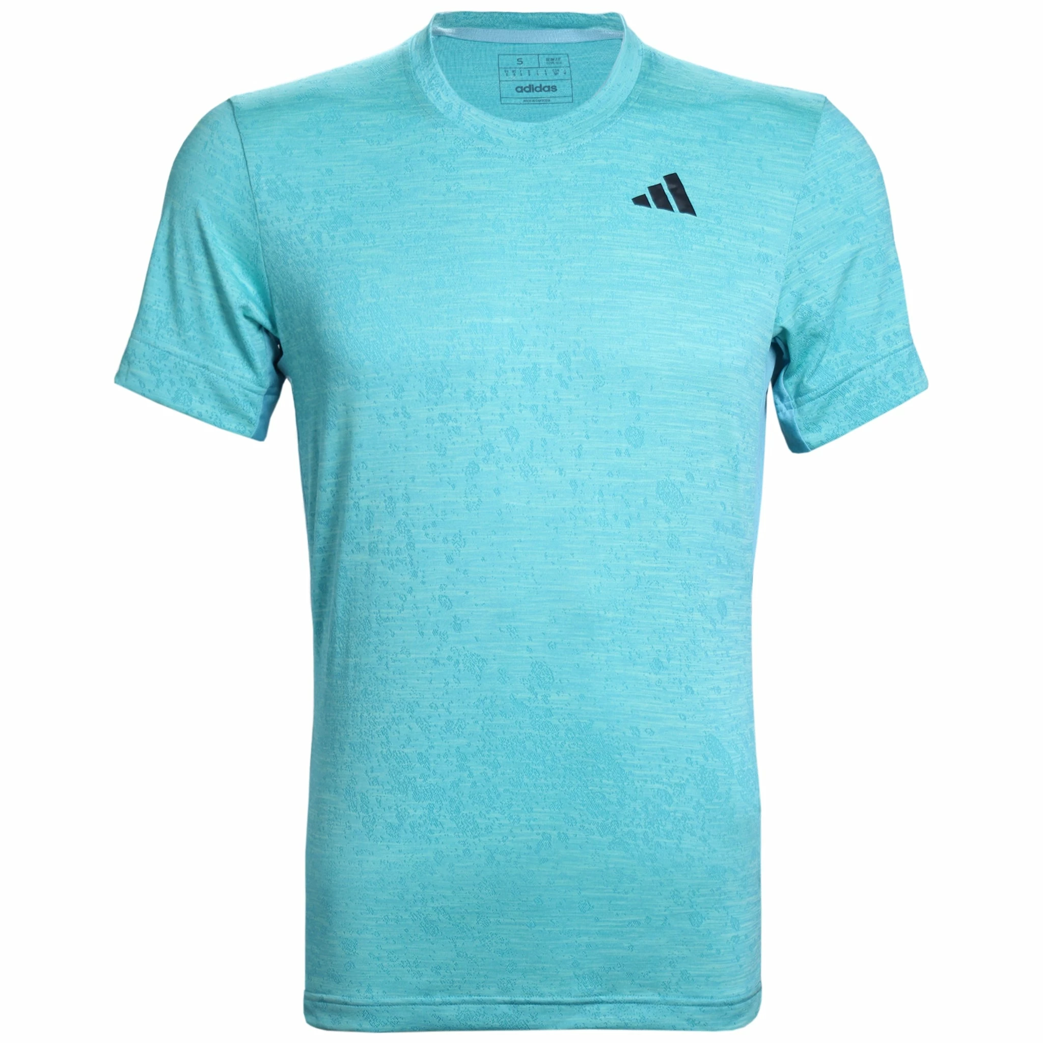 Adidas designed this slim-fitting tee to give you an edge on the court. The Gameset collection is performance-driven, and this shirt is no exception. The FreeLift design keeps the back hem in place during serves and smashes, while the stretchy fabric allows for full range of motion. The HEAT.RDY technology ensures that you stay cool and confident throughout the match.
