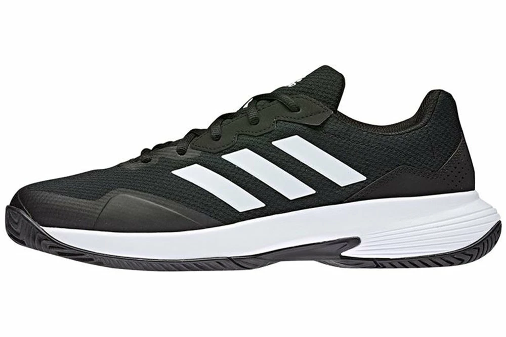 Raise your game without leaving your comfort zone. The breathable mesh upper on these adidas GameCourt tennis shoes keeps your feet cool. Supportive TPU helps mold it to the shape of your foot for a comfortable fit and secure lockdown. A Cloudfoam midsole softens every stride as you step up the intensity. Colour Shown: Core Black / Cloud White / Core Black.