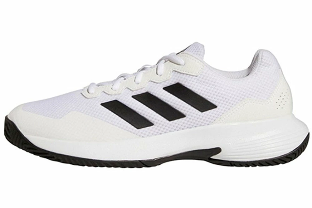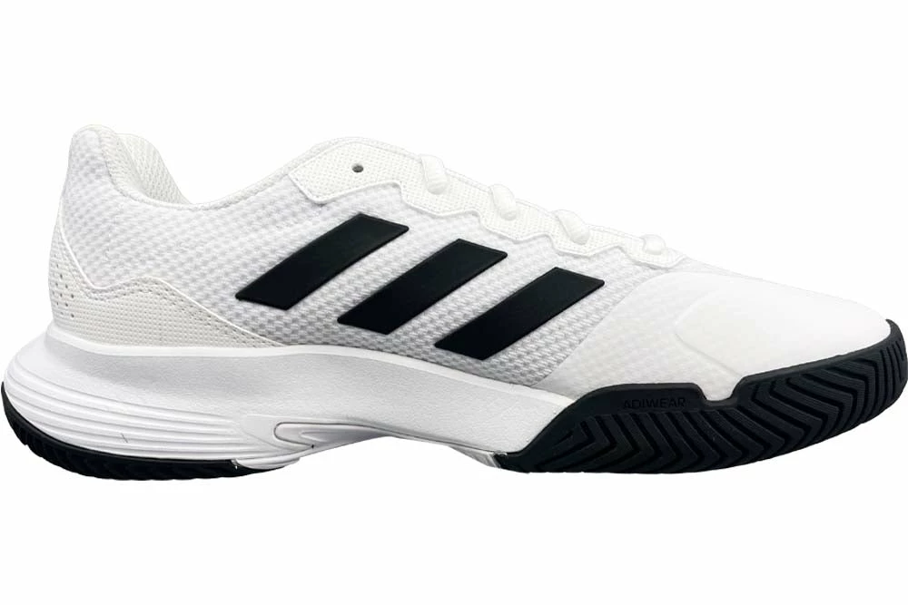 Raise your game without leaving your comfort zone. The breathable mesh upper on these adidas GameCourt tennis shoes keeps your feet cool. Supportive TPU helps mold it to the shape of your foot for a comfortable fit and secure lockdown. A Cloudfoam midsole softens every stride as you step up the intensity. Colour Shown: Cloud White / Core Black / Cloud White.
