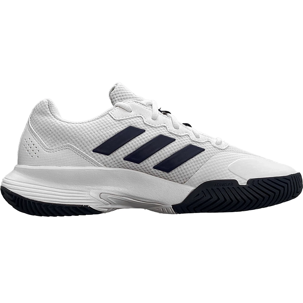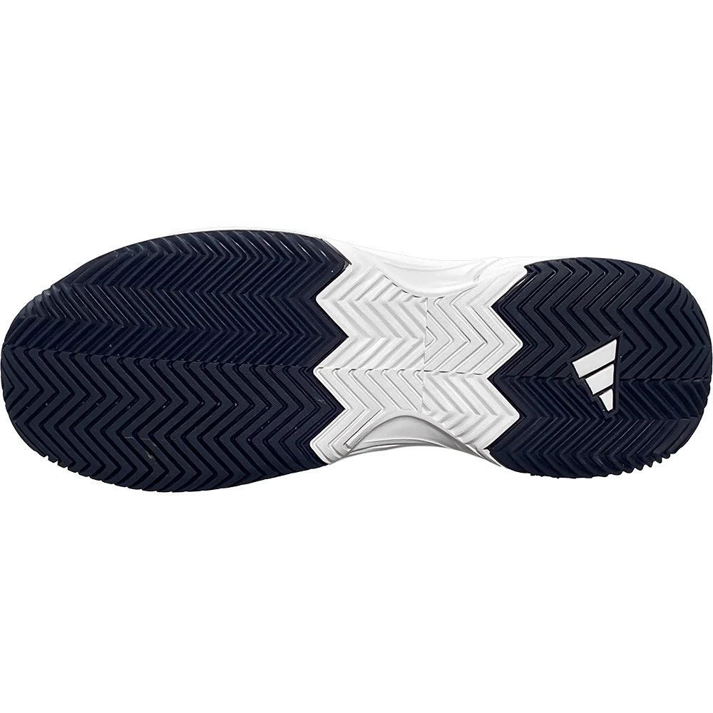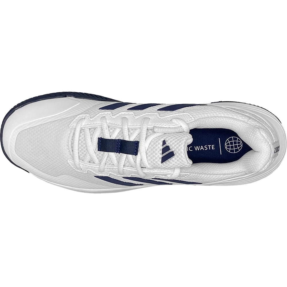 Perfect your game. These men’s adidas tennis shoes keep you cool and competitive with a breathable, flexible mesh upper. Padding in the heel locks you in for long rallies, while the EVA midsole cushions every stride. The durable Adiwear outsole helps you clock up the hours on court as you hone your game to perfection. This shoe is made with high-performance recycled materials and features an upper made with 50% recycled content. Colour Shown: Cloud White / Team Navy Blue 2 / Cloud White.