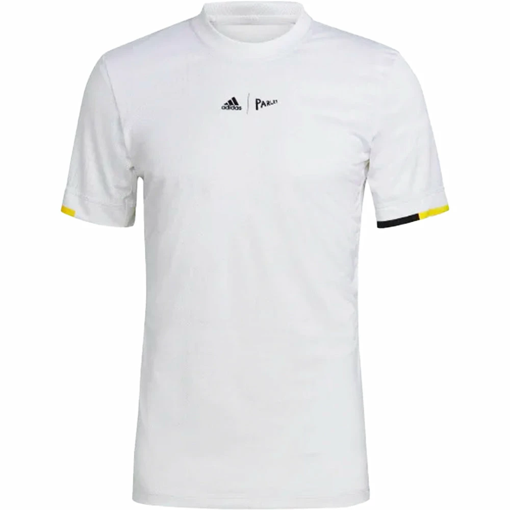 Serve for the oceans in a tennis tee that throws the spotlight on plastic waste. Part of an adidas collection created for the world’s most famous grass court tournament, this crewneck t-shirt is built to reduce distractions. Its FreeLift design gives you room to swing, and the droptail hem keeps you covered through every stretch and lunge. Mesh inserts and moisture-absorbing AEROREADY work together to keep you confident when your game shifts up a gear. Slim fit. Fabric:Â 100% recycled polyester raschel. Colour Shown:Â White / Impact Yellow.