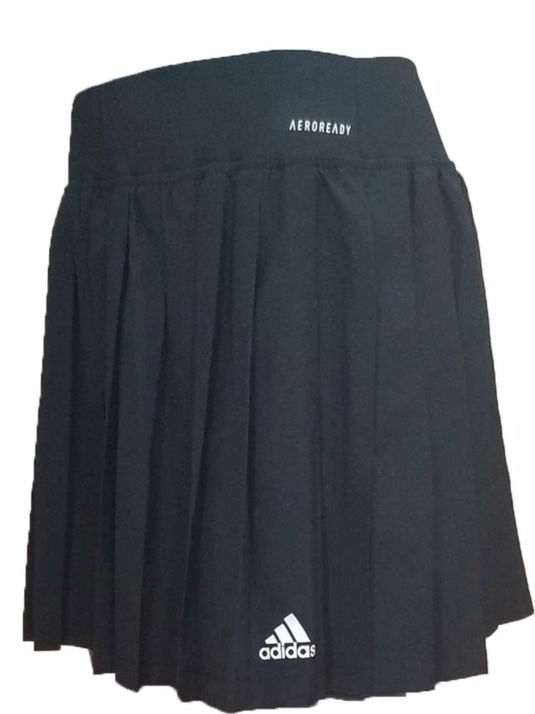 Country club style with a contemporary twist. Pleating and an A-line fit give this adidas Club skirt a timeless tennis feel. But its floating horizontal 3-Stripes bring it bang up-to-date. Moisture-managing AEROREADY will keep you dry through the fiercest rallies. Integrated tights add coverage for confidence on court. This product is made with Primegreen, a series of high-performance recycled materials. Fabric: 100% recycled polyester plain weave. Colour Shown: Black / White.