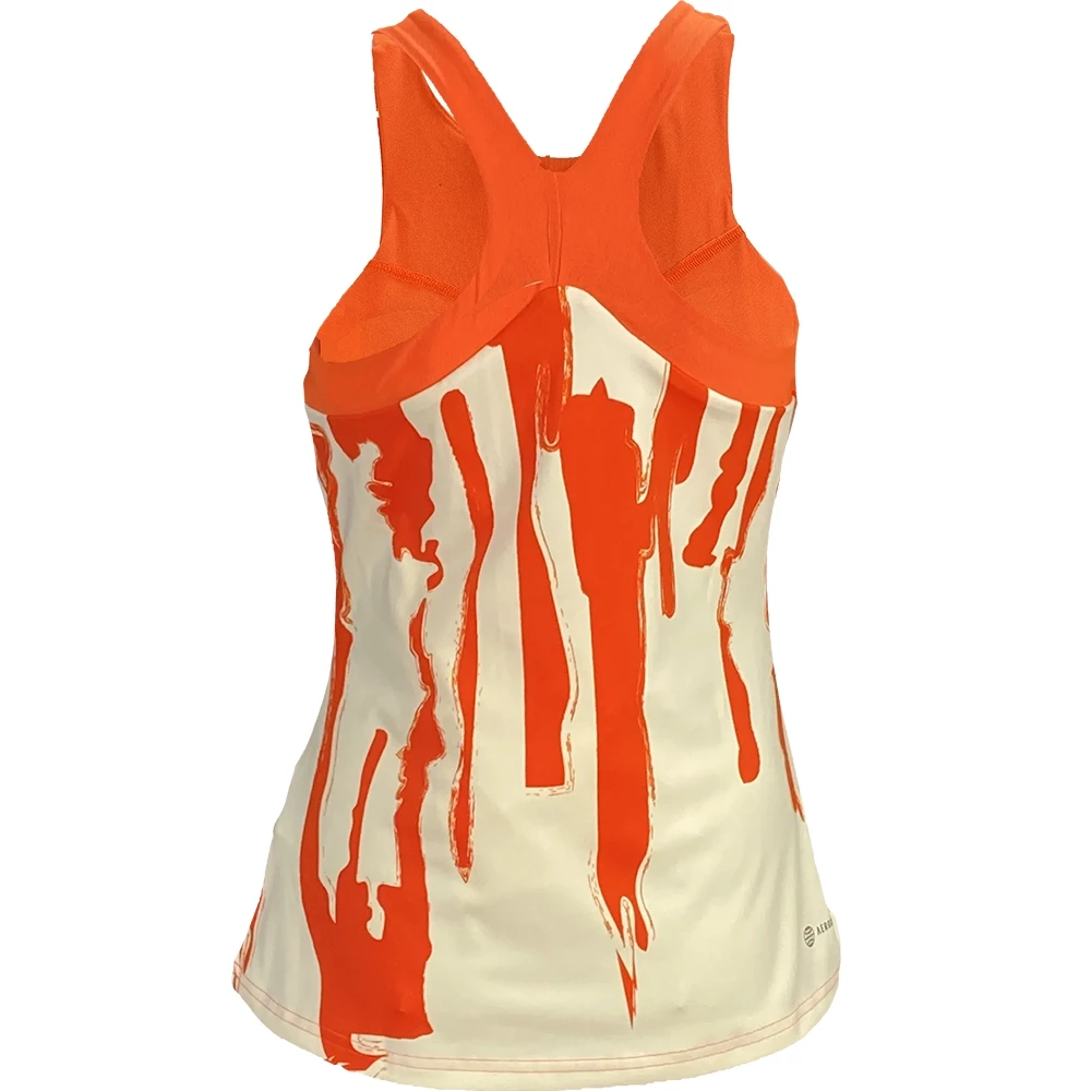 Designed in collaboration with South African fashion brand Thebe Magugu for North America’s biggest tennis tournament. This adidas tank top shows off a bold design inspired by culture and community. Slim-fitting and stretchy, it includes an elastic Y-strap that’s designed to give your shoulders unlimited freedom of movement. Moisture-absorbing AEROREADY reduces distractions so you can concentrate on expressing yourself. Slim fit. High neck. Fabric: 72% recycled polyester, 28% elastane interlock. Colour Shown: Ecru Tint / Impact Orange.