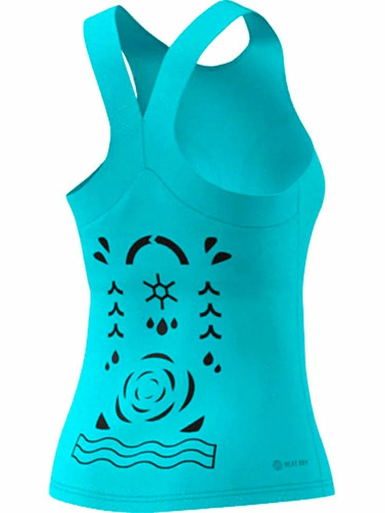 Celebrate the growth of diversity in sport. The eye-catching graphics on this adidas tank top were inspired by the famous botanical gardens surrounding Paris’ premier tennis destination. Starring on court during the clay court season, it features stretchy fabric and a shoulder-freeing Y-shaped strap for no-distraction play. Cooling HEAT.RDY keeps you at top speed even when the sun’s beating down. Y-elastic back. Integrated bra with removable pads. Round neck. Slim fit. Fabric: 93% recycled polyester, 7% elastane single jersey. Colour Shown: Pulse Aqua / Black.