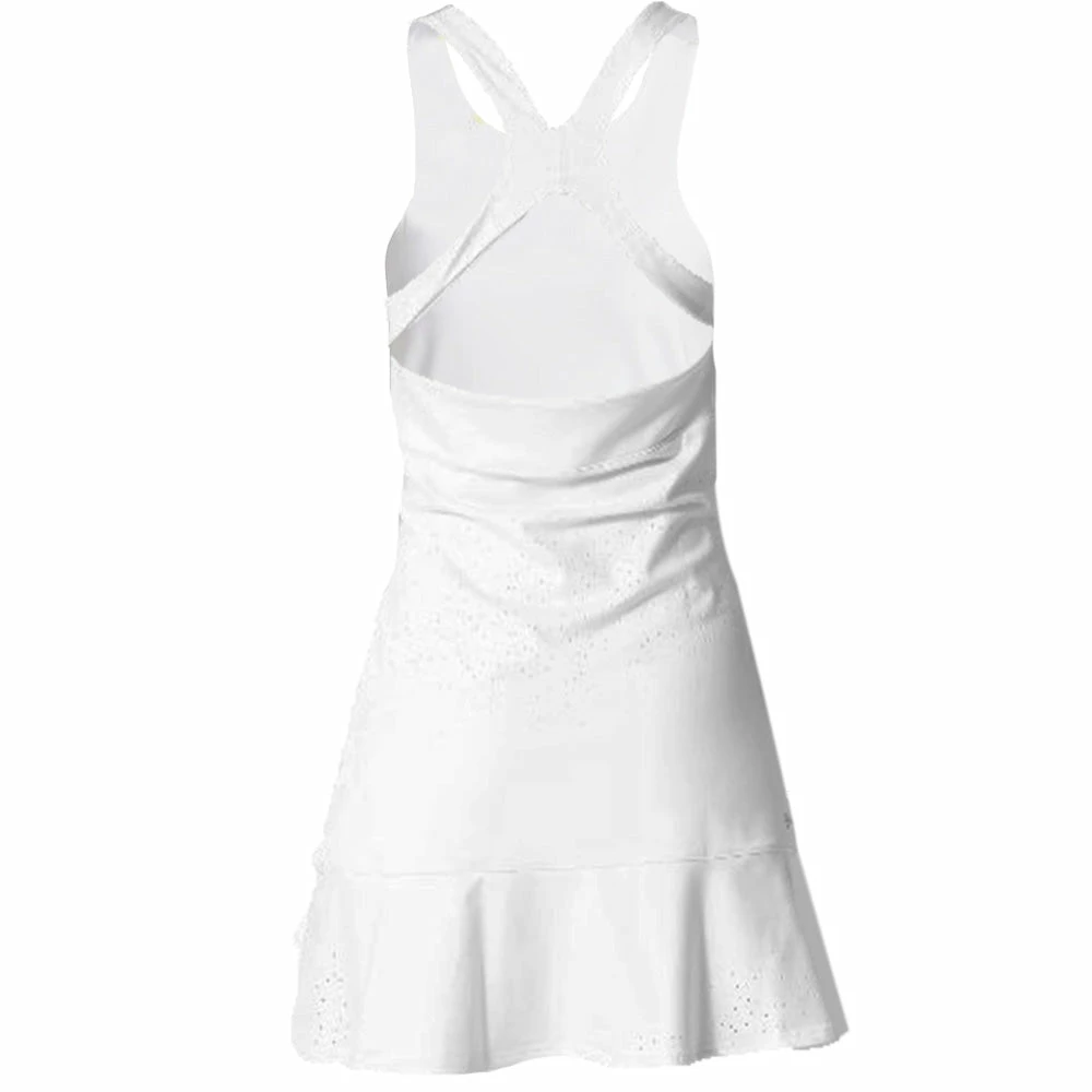 Serve for the oceans in a tennis dress that puts the problem of plastic waste under the microscope. Part of an adidas collection created for the green grass of South-West London, its Morse Code-inspired details tap out a message about the plight of our blue planet. Focused on comfort, this dress has a super-soft feel and includes moisture-wicking AEROREADY. Its Y-strap is ergonomically designed to give you room to play your all action game. Integrated inner bra. Inner tights. Round neck. Slim fit. Fabric: Dress: 70% recycled polyester, 30% elastane raschel. Colour Shown: White.