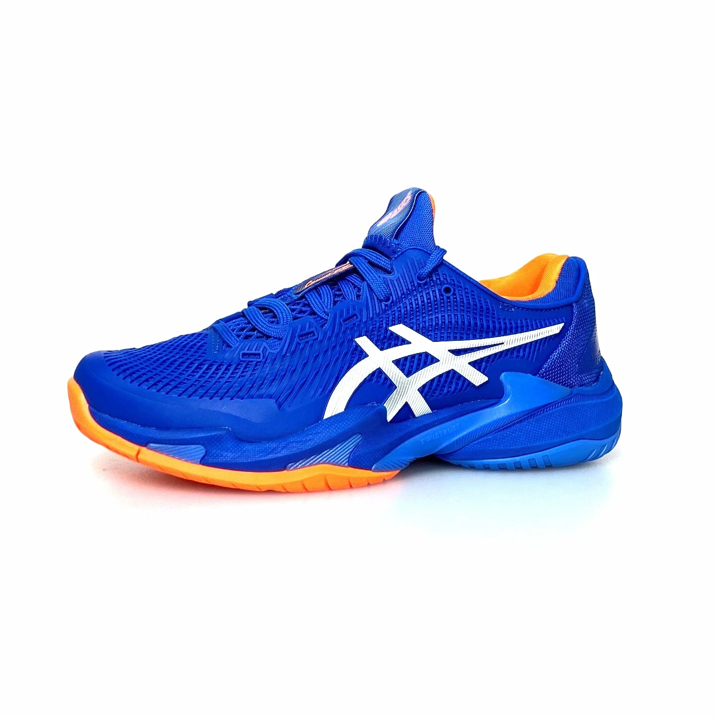 The choice of Novak Djokovic ! The COURT FF™ 3 tennis shoes are designed to help you swing stronger and recover quicker between shots. It creates a stable landing and reduces the load placed on the body. As a result, you’re able to put more energy into generating a powerful swing. For a smoother crossover step, this shoe allows you to perform quicker turns in a shorter timeframe. With good outsole grip and a TWISTRUSS™ support system, you can push off the ground with more force. This helps you quickly recover and get back to your ready position more smoothly. Colour Shown: Tune Blue / White.