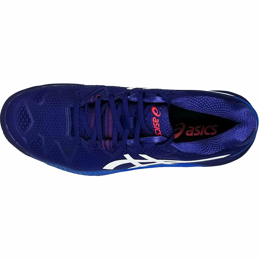 The GEL-RESOLUTION® 8 tennis shoe promotes a responsive stride with a close-to-the-court feel. The FLEXION FIT® upper provides form-fitting support with the integration of DYNAWALL™ technology, which offers added midfoot stability during lateral movements and coast-to-coast coverage. Implementing a torque control feature in the heel counter, this shoe is also designed to help maintain a locked in feel during quick transitions. Renowned for its signature GEL® technology based cushioning in the heel and midfoot, this shoe significantly reduces the impact of shock from abrupt stop and go movements on court. Additionally, the model also incorporates an AHAR® compound in the outsole that works in conjunction with the PGUARD™ toe protector to increase traction on court and reduce the overall level of wear. Creating an accelerated response with a natural close-to-the-ground feel, the GEL-RESOLUTION® 8 tennis shoe allows you to approach your matches with confidence. Colour Shown: Dive Blue / White.