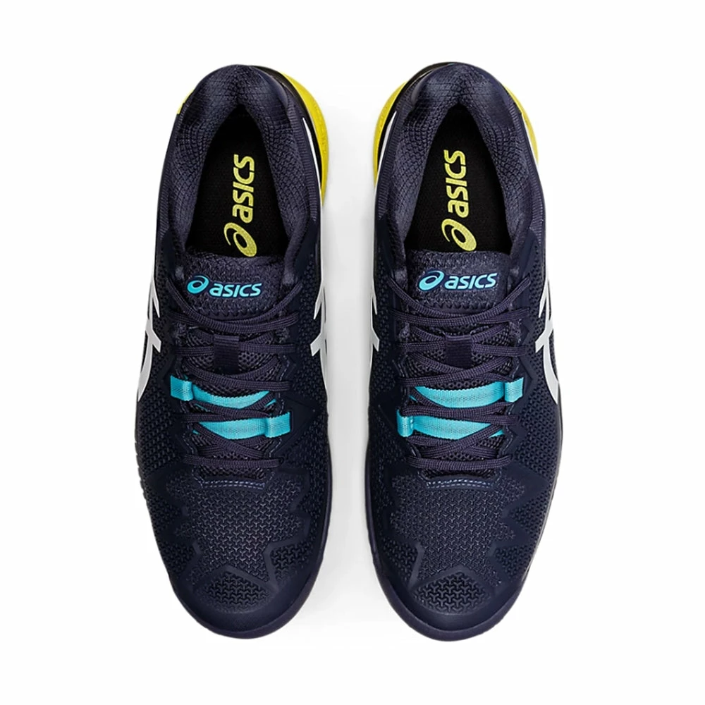 The GEL-RESOLUTION® 8 tennis shoe promotes a responsive stride with a close-to-the-court feel. The FLEXION FIT® upper provides form-fitting support with the integration of DYNAWALL™ technology, which offers added midfoot stability during lateral movements and coast-to-coast coverage. Implementing a torque control feature in the heel counter, this shoe is also designed to help maintain a locked in feel during quick transitions. Renowned for its signature GEL® technology based cushioning in the heel and midfoot, this shoe significantly reduces the impact of shock from abrupt stop and go movements on court. Additionally, the model also incorporates an AHAR® compound in the outsole that works in conjunction with the PGUARD™ toe protector to increase traction on court and reduce the overall level of wear. Creating an accelerated response with a natural close-to-the-ground feel, the GEL-RESOLUTION® 8 tennis shoe allows you to approach your matches with confidence. Colour Shown: Indigo/White.