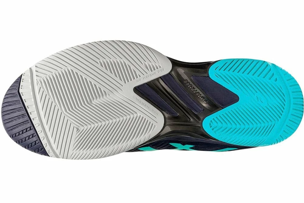 The Gel Solution Speed FF is designed to propel you to greater heights on the court. It features FLYTEFOAM™ technology in the midsole, an organic compound made from organic fibers that doesn’t create the “packing out” that so often happens with softer, lower density foams. It also features the TWISTRUSS™ System, which absorbs shock while allowing the foot a full range of movement. It boasts rear and forefoot GEL™ technology, providing unparalleled comfort and shock absorption. Meanwhile, the FLEXION FIT™ upper gives added stability for lightning-quick movement during your game and the ORTHOLITE™ sockliner is removable to accommodate a medical orthotic. The SOLUTION SPEED™ FF tennis shoe boasts a durable tennis AHAR™ outsole, FLEXION FIT™ vamps and PGUARD™ toe protector, as well as an Anti-Gravel Tongue that repels dirt and debris, so nothing will get in the way of your game. It all makes for a durable shoe that you can really put through its paces on court. Shown: Indigo / Ice Mint.