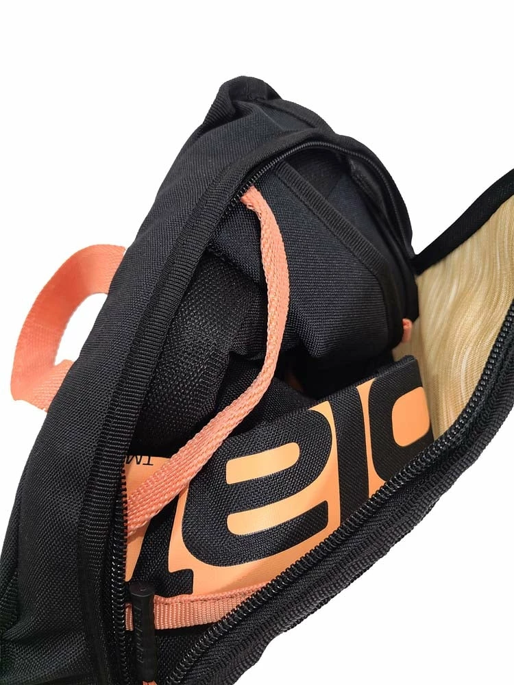 This backpack is the perfect option for the player on the go. Main compartment with pocket for water bottle or tin of balls. Racket compartment with extendible handle protection. Zip pocket on the front. Padded straps and back for added comfort.