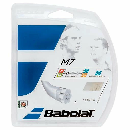 M7 has a unique contruction of 7 polyamide strands that allow the string to reduce impact shock and provide unmatched comfort. Recommended for players seeking a balance between precision, comfort and power. With its unique construction, players can expect good durability. The 16 gauge offers additional durability.
