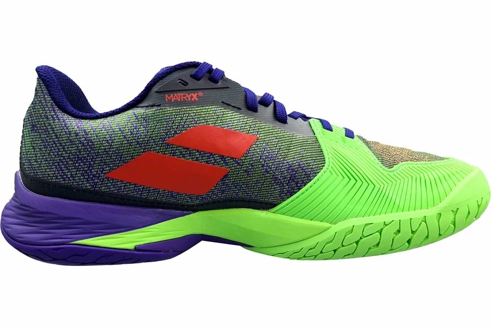 The Jet Mach 3 offers a 2-piece Matryx®SL version of the woven upper made with polyamide fibers and Kevlar® inserts, making it lightweight, supportive and breathable. Excellent shock absorption with the Ortholite® memory insole and Kompressor system. The Active Flexion and Michelin outsole (traction and durability) provide rebound. Its innovative design makes it the ideal shoe for all young competitive players. Colour Shown: Lime.