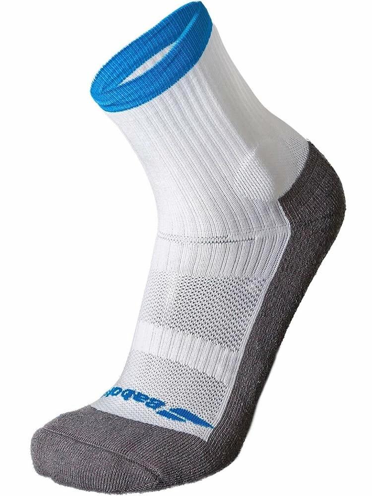 Tennis is a very demanding sport for the foot. This Babolat Men’s Pro 360 socks was specially designed to meet tennis players’ very specific needs. Ventilation at the arch and on top of the foot. The wide elastic band around the ankle provides better support. Several sections of the sock offer protection against impact and wear: there is cushioning under the sole of the foot, protection at the Achilles tendon and anti-wear as well as tear cushioning toe at the first metatarsal and heel. Anatomical left and right foot. 1 package contains one pair of socks. Colour Shown: White / Blue.