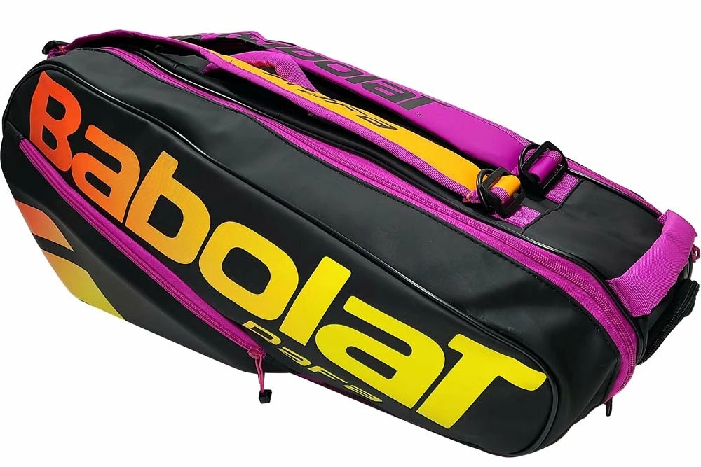 TOP OF THE LINE TENNIS BAG! Stiff shell structure with a carbon like effect to protect racquets. Insulated racquet compatment to maintain string tension settings. Convenient central comparment for storing clothes. Removable shoe pouch. Large side pocket with integrated organizer for tennis accessories and personal items. Dual carrying strap with ergonomic shoulder pads for greater comfort. Logo window to personalize your bag (visit www.mybabolatbag.com to create your own unique tag).