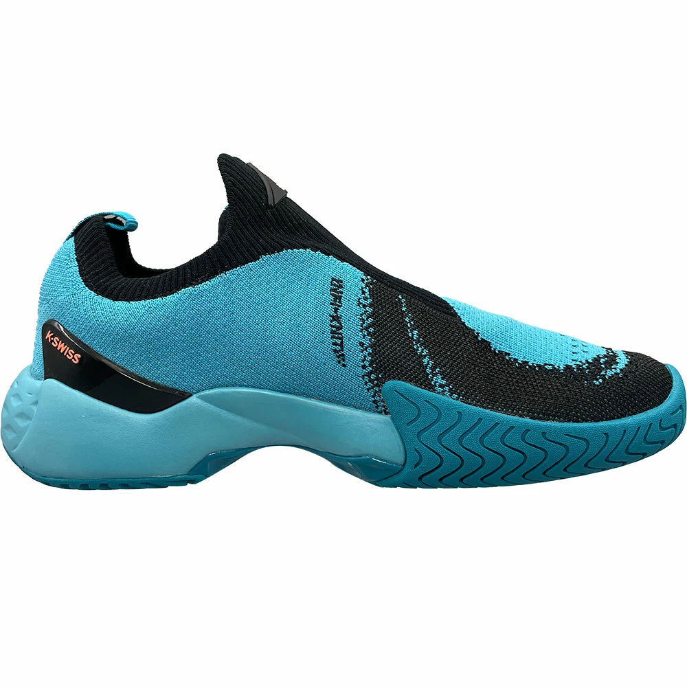 The new Aero Knit is the lightest shoe in K-Swiss history and combines the very best in design and performance. The shoe features an aerodynamic upper with hidden laces and Infi-Knit technology providing protection and support. The Aero Knit also incorporates Surge technology for optimal cushioning and energy return, perfect for a competitive junior or adult player looking for a lightweight, comfortable shoe. Colour Shown: Algiers Blue / Black / Soft Neon Orange.