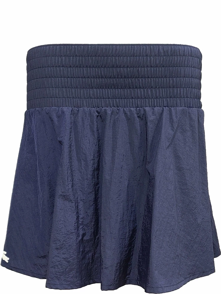 Technical and feminine, this Lacoste Sport tennis skirt is crafted in a new, lightweight recycled nylon with a slightly crushed effect. It includes built-in compression shorts and elastic waistband to enable you to move in total freedom. Short and delightful to wear, it will never let you down. Contrast crocodile transfer at bottom of garment. Fabric: Polyamide (100%) / Integrated shorts: Polyester (77%), Elastane (23%). Colour Shown: Blue.