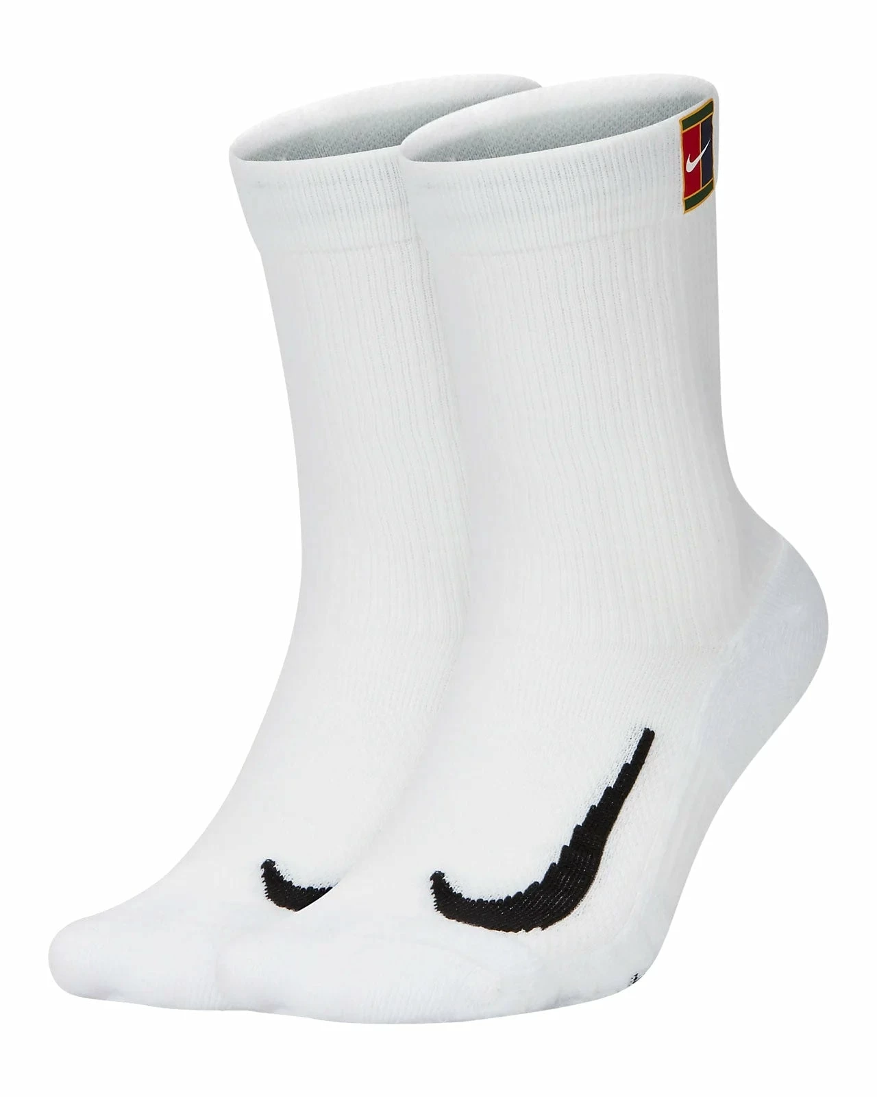 The NikeCourt Multiplier Cushioned Crew Socks bring comfort to the next level thanks to plush cushioning and soft, sweat-wicking fabric. Fabric: 96% polyester/4% spandex. Colour Shown: White / White.
