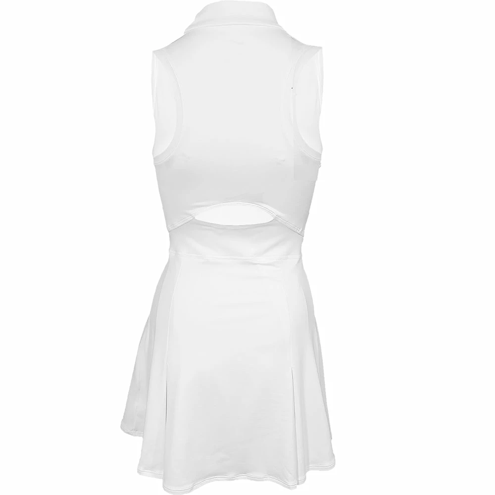 Add a touch of sophistication to your game look in this tennis dress, pairing a V-neck with a mock-neck collar. This lightweight design is incredibly soft and made from extra stretchy fabric so you can move in total comfort on and off the court. Ball shorts are not included with this dress, so you can style it however you’d like. This product is made from at least 75% recycled polyester fibres. Slim fit for a tailored feel. Fabric: 88% polyester/12% elastane. Colour Shown: White/Black.