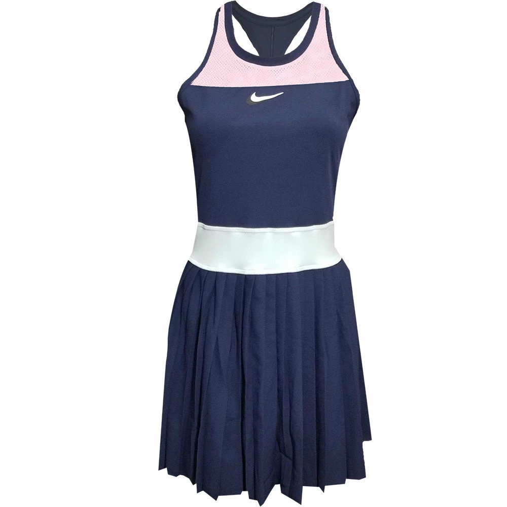 Make a statement on the court. Crafted from lightweight, breathable fabric, this dress combines stretchy, snug support on top with pleats that flow and flare with your movement on the bottom for a bold, powerful look. Slim fit for a tailored feel. Fabric: Upper Body: 83% Polyester/17% Elastane. Skirt/Mesh: 100% Polyester. Color Shown: Midnight Navy / Light Arctic Pink / Glacier Blue / White.