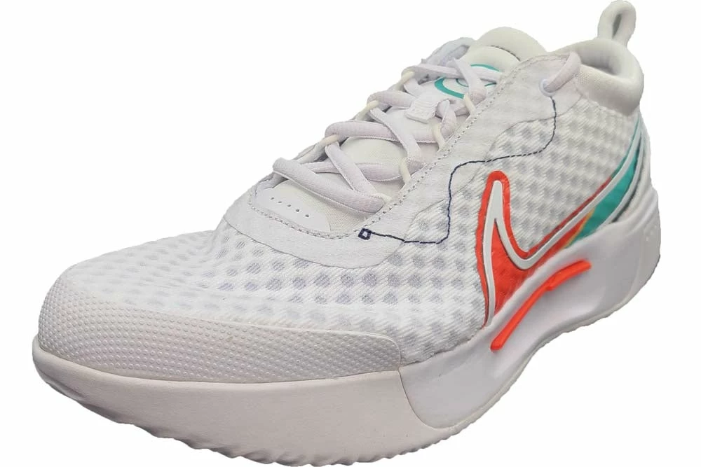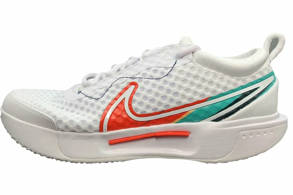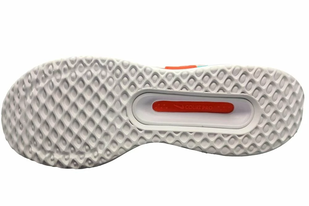Get the most out of every step in the NikeCourt Zoom Pro. Using insights from our top athletes, we added forefoot cushioning for extra bounce and spring when you push off to serve. After removing as much weight as we could without sacrificing durability, we also made sure this incredibly lightweight design was extremely comfortable. Thanks to a plush collar and breathable mesh, you’ll get the cool, cushioned feel you love so you can focus on playing at your best. Colour Shown: White / Washed Teal-Habanero Red.