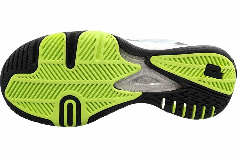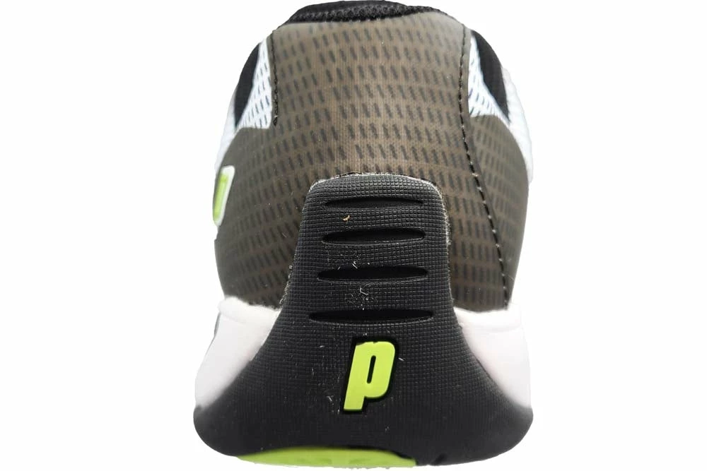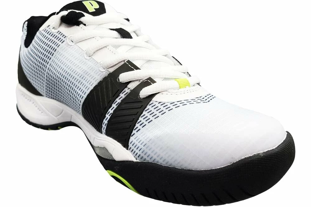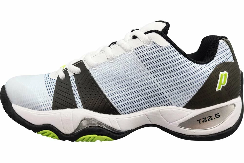 A favorite for many years has been redesigned but maintains the same great durable performance. The Prince T22.5 Shoe now features a new breathable upper that is more flexible but doesn’t compromise on support. The EVA Midsole features Prince’s Shockeraser Heel Insert to attenuate through your steps. The T22.5 outsole is made of PRC 1000 Durable Rubber that features a herringbone tread pattern so you can take these shoes on any court surface with confidence. Colour Shown: White / Black / Green.