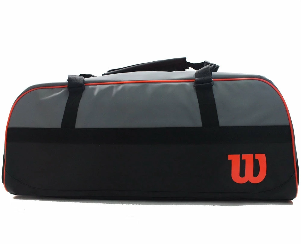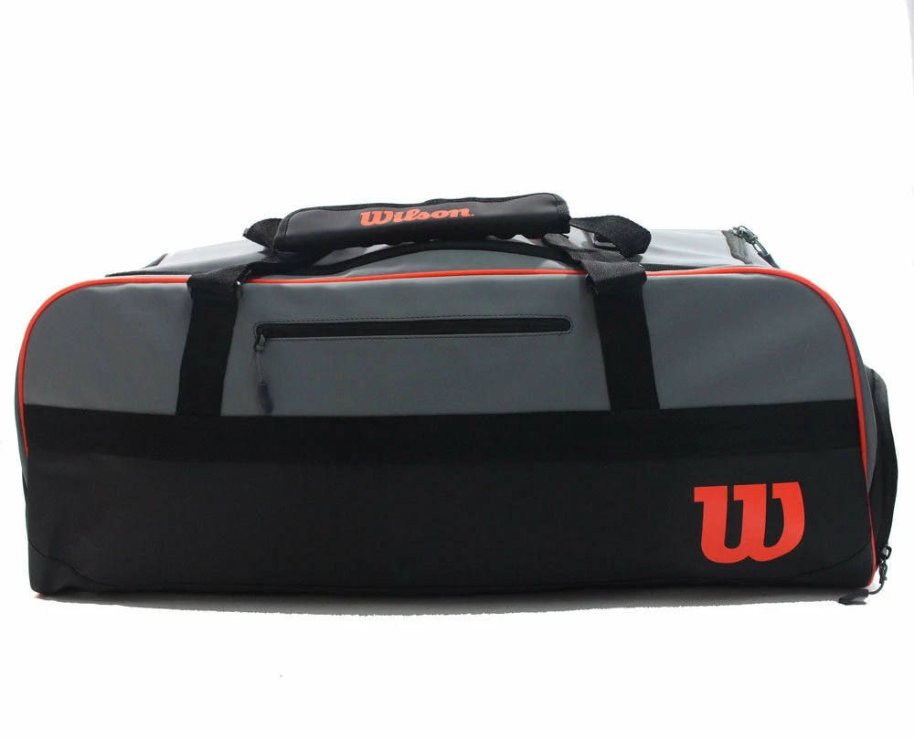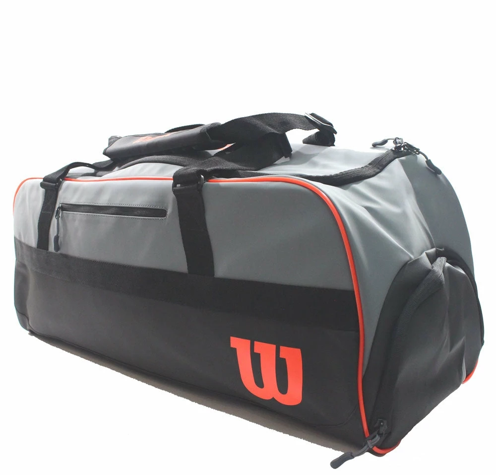 Designed in the spirit of the Clash Revolution, the Clash Large Duffel in Black-Grey-Red holds 3-4 rackets and includes a plethora of attractive features for tennis enthusiasts. Store tennis shoes in a side zip shoe pocket, place keys and other personal effects inside interior accessory pockets, and get everything organized with an interior divider system that keeps rackets, clothing and other items separated during transit.