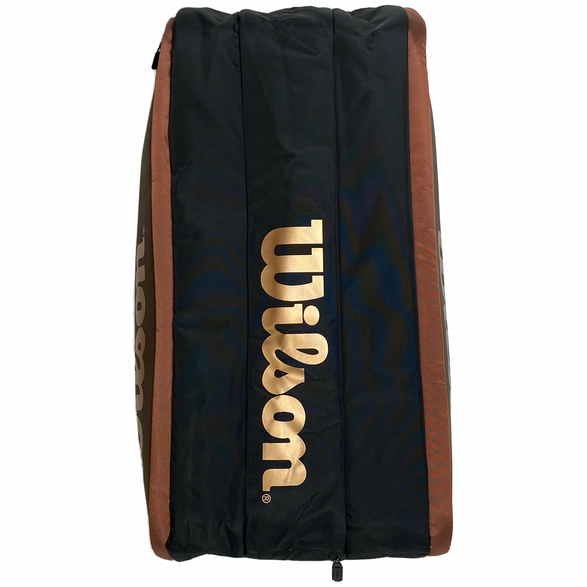 The Super Tour Pro Staff Collection, combining a nod to the iconic Pro Staff series with top-notch functional performance, is meant for tennis purists globally. The 15 Pack bag in this collection has three main compartments, two of which are equipped with Thermoguard to guard contents against high temperatures. It also has large exterior side pockets, a breathable shoe compartment, dual carrying options, and reinforced side panels for enhanced durability. Color Shown: Bronze.