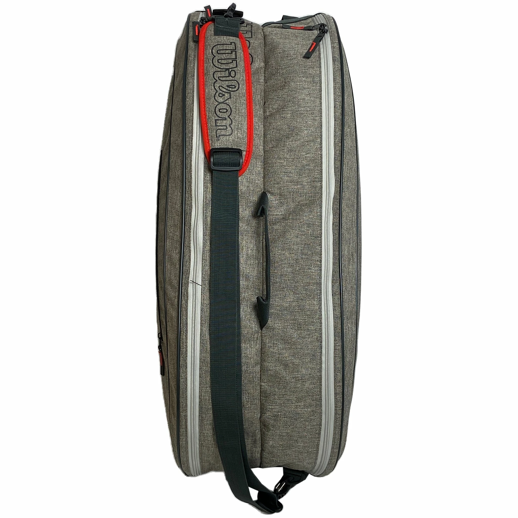The Wilson’s Team 6-Pack tennis bag is ideal for club players who require ample space for their gear. With two main compartments, it can accommodate up to six rackets, and an outer zip pocket provides convenient storage for balls, grips, and snacks. The bag can be carried with top handles or via its padded shoulder straps. Colour Shown: Heather Grey.