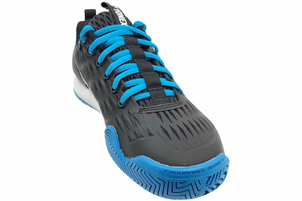 The shoe of choice for Stan Wawrinka ! The Yonex Power Cushion Eclipsion 3 continues to build on the success of its popular predecessor by continuing to offer excellent comfort, stability and durability for serious tennis players. Yonexโs signature Power Cushion technology offers exceptional cushioning and repulsion under foot, injecting energy into every step you take. A re-engineered fit allows full extension of the big toe for optimal power output while the midfoot and heel better fit the foot to keep it locked in and protected. Other features: PU upper with Guard Durable Skin technology for added support and durability in key areas. Plenty of exposed mesh for breathability. An interlocking shank and heel counter offers locked-in support from the midfoot to the heel. Endurance Rubber outsole in a modified herringbone tread pattern offers great traction and durability on any court surface. All in all, a great shoe offrering excellent balance between performance, comfort and durability. Colour Shown: Black / Blue.