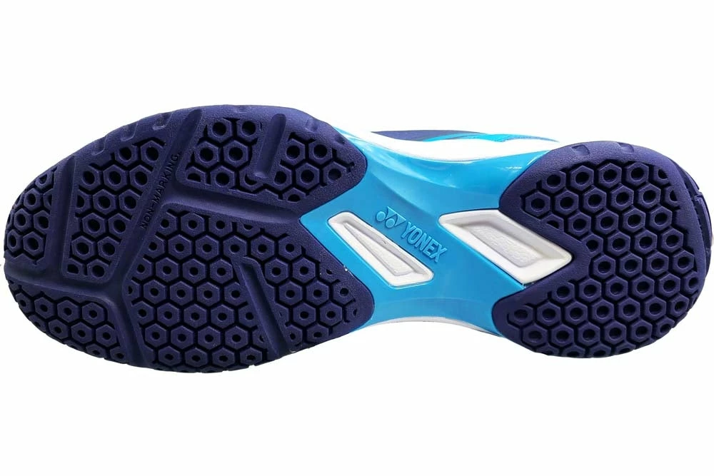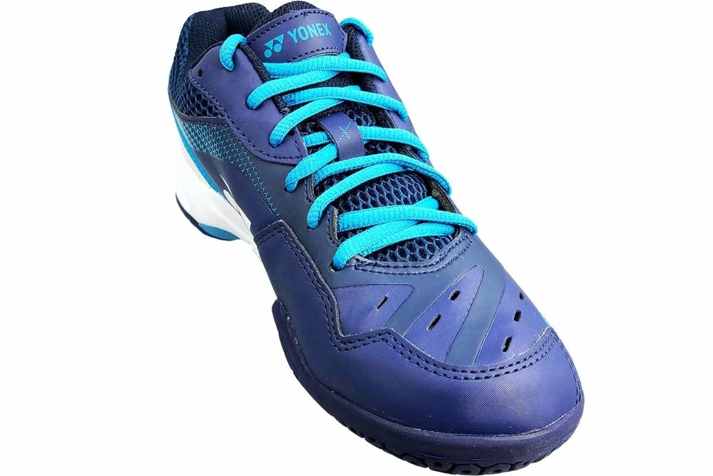 The Yonex Power Cushion 65X3 is a stability-styled shoe where the breathable upper part is made of synthetic leather and polyester for solidity and comfort. The innersole is made of durable EVA and is combined with the Power Cushion technology at heel for maximum shock absorption, and with a 3D Power Graphite Sheet to enhance the shoe response. The non-marking outsole is highly adherent. Colour Shown: Navy Blue.
